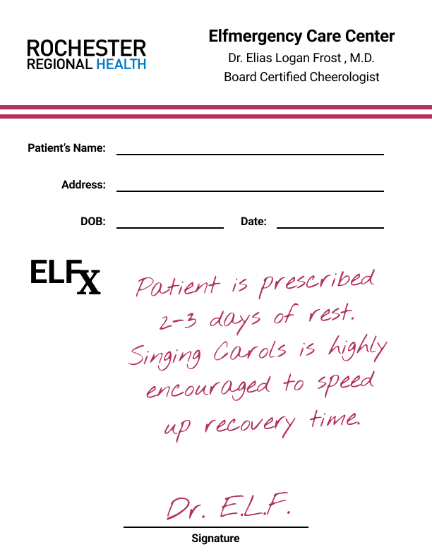 Show the doctor's prescription: Print the prescription from the doctor to show a written note on your elf's condition.