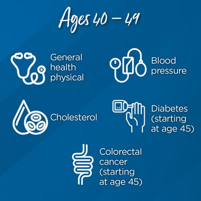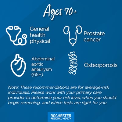 Depending on your age, you may be at a higher risk for certain health conditions, ranging from high blood pressure to heart disease. Keeping up with routine screenings is an important part of maintaining a healthy lifestyle.