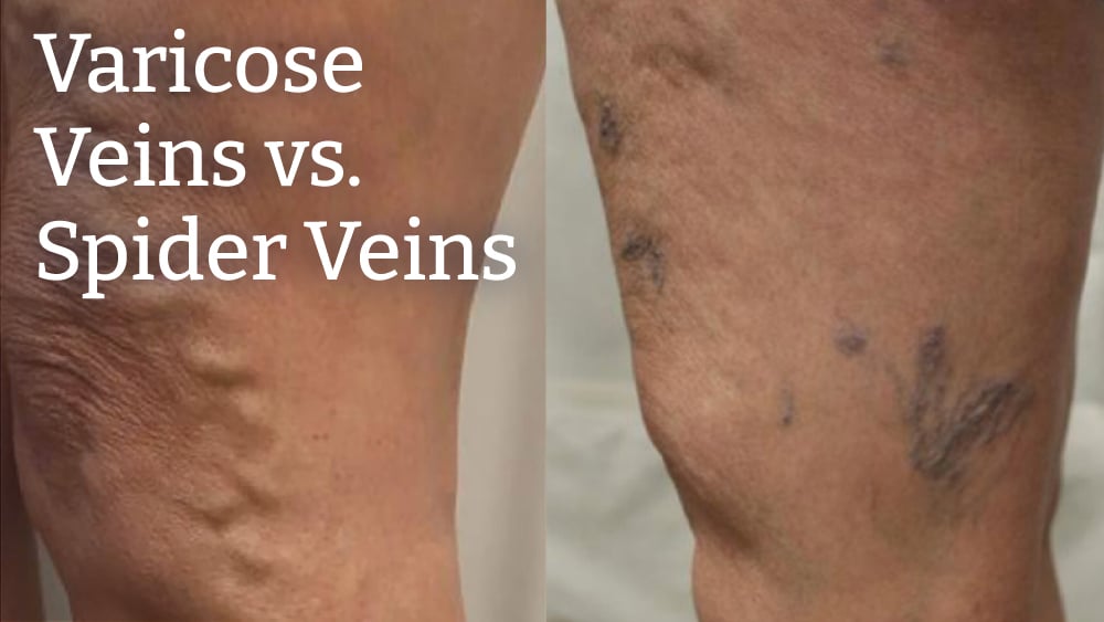 To find the correct treatment for your leg veins, it is important to understand the differences between varicose veins and spider veins. Many people mistakenly think varicose and spider veins are two different names for the same condition. While it’s true that patients can have both types of veins, they have different symptoms, risks, and treatments associated with each separate condition.